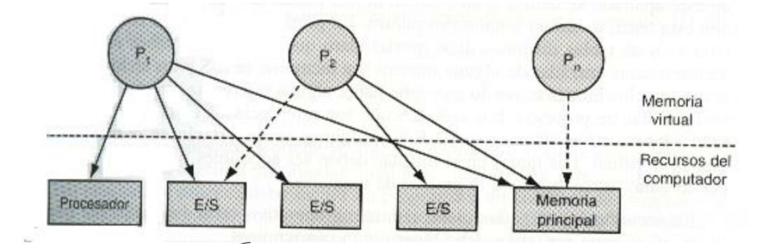 El sistema operativo distribuye los recursos disponibles (como CPU, memoria y dispositivos de E/S) entre los procesos que los solicitan.- Ejemplo: Cuando un proceso necesita más memoria, el sistema operativo le asigna bloques de la memoria principal si están disponibles.