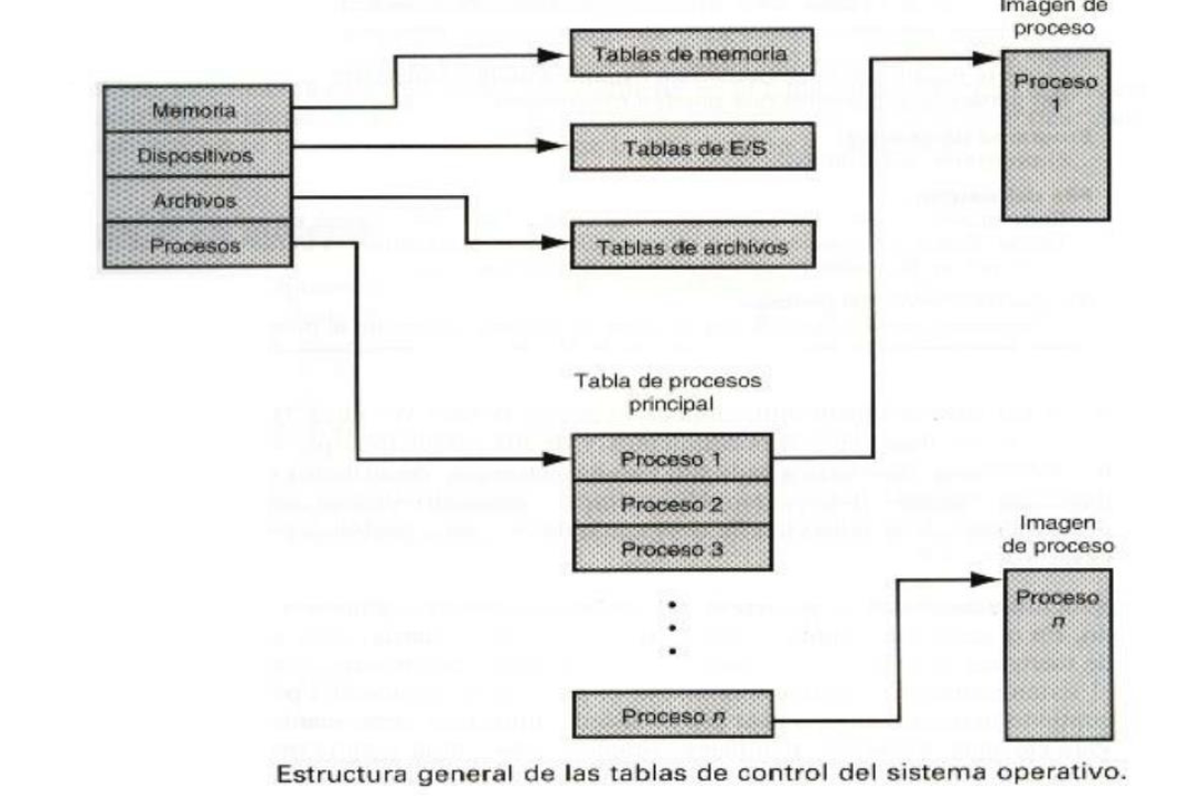 El sistema operativo utiliza varias estructuras de control para gestionar eficientemente la memoria, los dispositivos y los procesos.